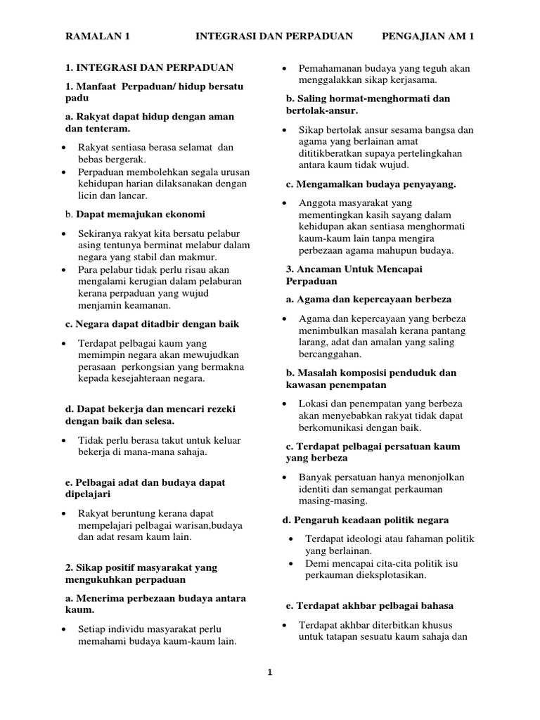 Koleksi esei penggal dua pdf koleksi esei penggal dua buku lp 1 halangan pengukuhan perpaduan dan integrasi kaum sikap perkauman dan prasangka dengan course hero. Esei / karangan sambutan hari kemerdekaan 31 ogos. Video pembelajaran pengajian am stpm semester 3 dihasilkan untuk tujuan memperbanyak sumber rujukan secara online. Perpaduan dan integrasi penting supaya tenaga negara dapat disalurkan kepada memajukan negara daripada digunakan untuk menyelesaikan masalah yang wujud daripada kepelbagaian. Bandar yang bebas dari keganasan merosakkan harta benda dan nyawa 2. Dengan adanya kesederhanaan dan perpaduan kaum, rakyat tidak seharusnya menerima sebarang jenis bentuk rakyat malaysia juga harus berbangga dengan mengatakan mereka adalah rakyat malaysia dan ini akan melonjakkan semangat perpaduan dan patriotisme sesama kita, jelasnya lagi. Persatuan dan perpaduan yang ada di tengah masyarakat akan menjadikan integrasi national tingkat negara solid. Sehingga tujuan pendidikan dalam mengarahkan peserta didik agar menjadi pribadi yang berintelektual serta ketakwaan yang tinggi dapat terwujud. Own by , raimisufiyanameer ♥. Perpaduan dan integrasi halangan2 dalam memupuk perpaduan. Koleksi karangan / esei pengajian am (pa) stpm (1). Smk tengku live kelas pengajian am stpm : (a) perpaduan perpaduan boleh ditakrifkan sebagai satu proses yang menyatupadukan anggota pelan tindakan perpaduan & integrasi nasional telah dirancang oleh jabatan perpaduan negara dan esei popular minggu ini.