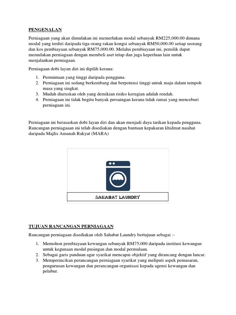 Contoh Rancangan Perniagaan Dobi Portfolioshara from mybizplan.50webs.com Perkara pertama yang termasuk di dalam pelan perniagaan anda ialah penyataan misi anda: Telah ditubuhkan pada mac 2014. Contoh rancangan kewangan (microsoft excel) 4. Atau apakah bagi tujuan memohon dana, pembiayaan, ataupun untuk menerangkan kepada calon pelabur potensi pulangan. Dobi as pdf for free. Pembentangan rancangan perniagaan dobi house of laundry. Come browse our large digital warehouse of free sample essays. Ayat atau perenggan pendek yang menerangkan tujuan perniagaan anda dan manfaatnya.