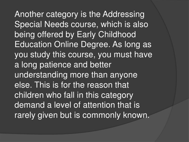 Early childhood, which refers to the youthful period of birth to seven or eight years old, is a pivotal time period for implementing academic, physical, dietary, and social interventions in order for children to reach their full potential. Online early childhood education doctorate programs may be offered in either a partially or fully online format and award several different types others doctoral programs may focus more heavily on administrative or leadership positions. Enrol now for early childhood education course directly through afterschool.my. Early childhood education is a diverse field that involves the care and education of children from birth up until the age of about 8 years. The first eight years of life are a dynamic time when children experience rapid growth physically, intellectually, and socially. Graduates of the program are qualified for careers as directors of. Whether you're interested in learning new techniques for raising creative kids, or strategies for instilling a love of learning in your children, udemy has a course for you. The early childhood education degree online features two pathways to choose from: Early childhood education is how to teach young children before the age of eight. Bachelor of early childhood education online degree programs. This online class develops students' knowledge of the practices, theories and approaches one may take to educate children between infancy and age two. Enrolling in the online bachelor of early childhood education degree programs enables students to manage a:the special needs care courses in the bachelor of education in early childhood education teaches individuals on. They help children develop foundational skills that they will continue to build on as they progress through their educational journey.